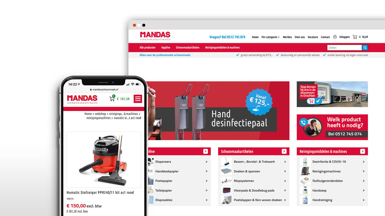 Mandas Schoonmaakartikelen in Drachten biedt u alle mogelijke oplossingen op het gebied van reinigingsmiddelen, machines en schoonmaakmaterialen. Mandas is werkzaam in alle denkbare sectoren. Van gemeentes, scholen en zorginstellingen tot horecagelegenheden, sport & recreatie, schoonmaakbedrijven en de (zware) industrie. Overal waar het écht schoon moet zijn, vindt u Mandas.